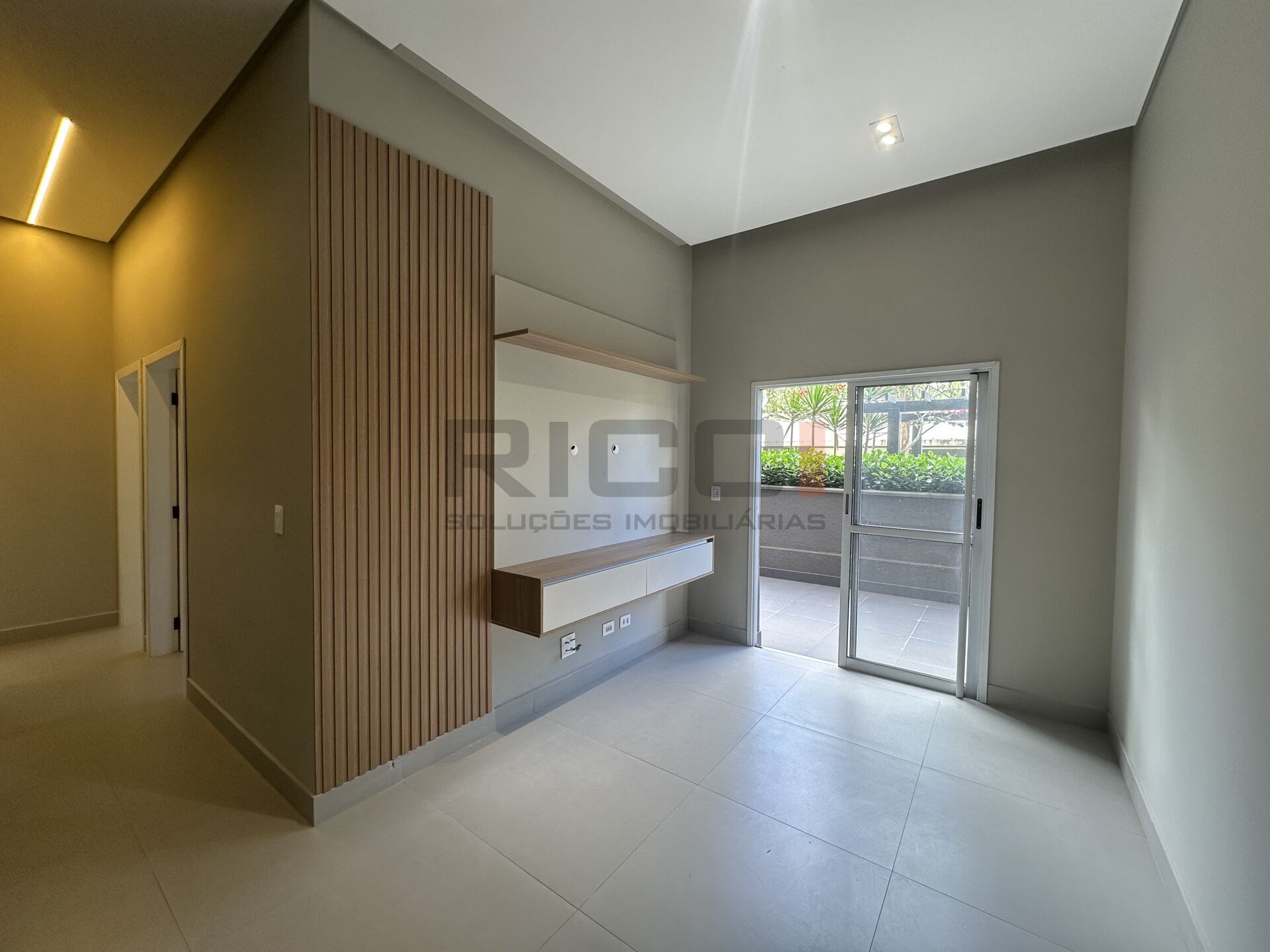 Sala de estar com painel de TV