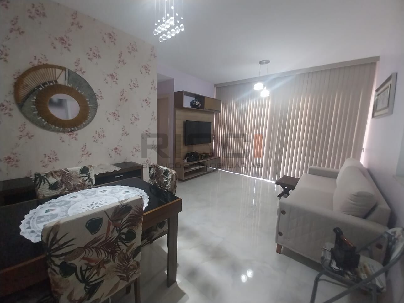 Sala 2 ambientes, bem iluminada (sol da tarde)