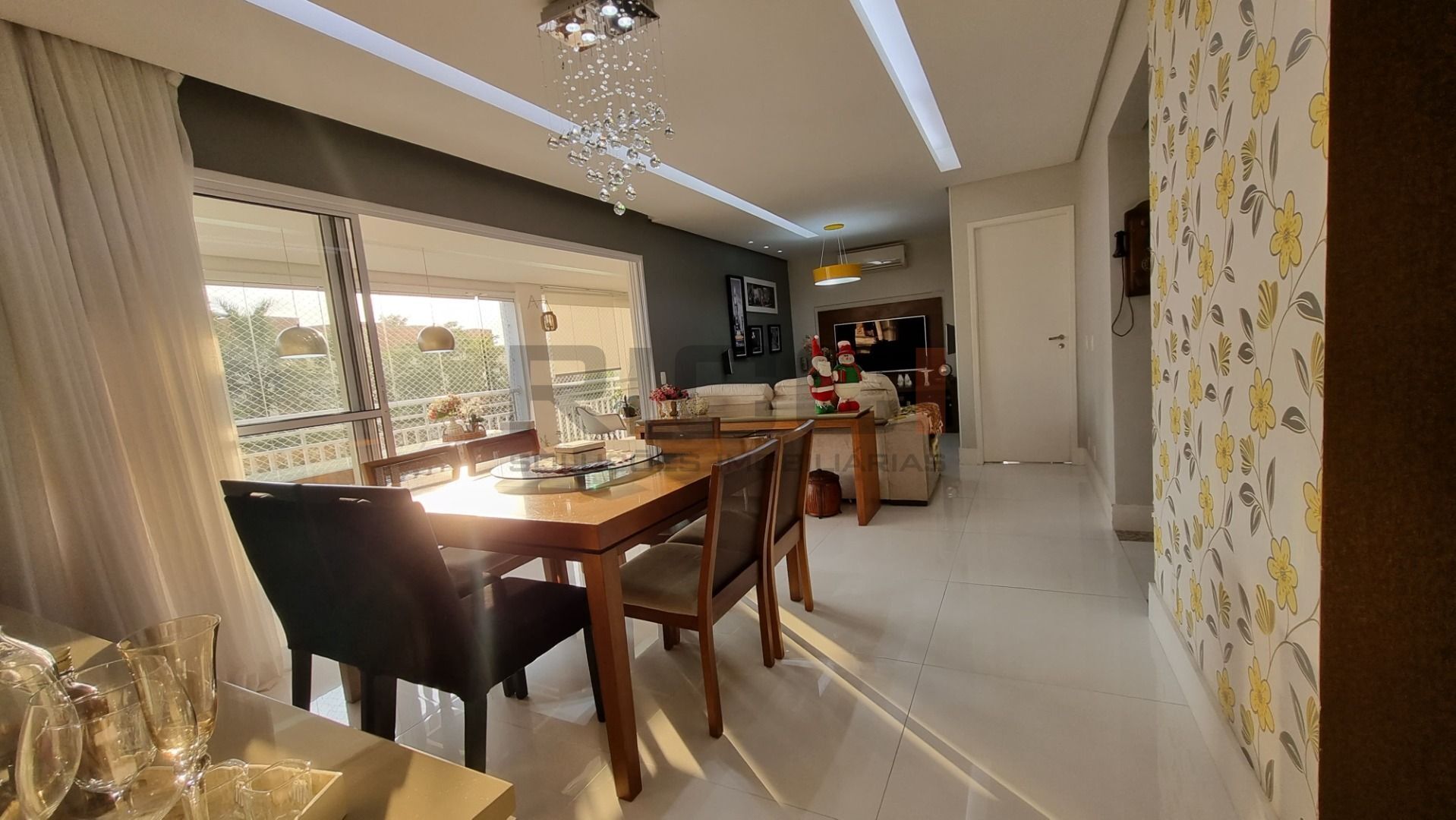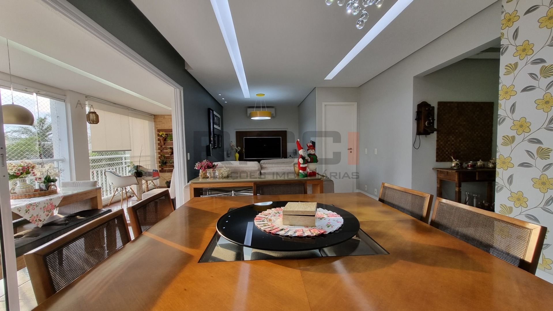 Sala de estar e jantar integradas, criando um ambiente moderno e acolhedor