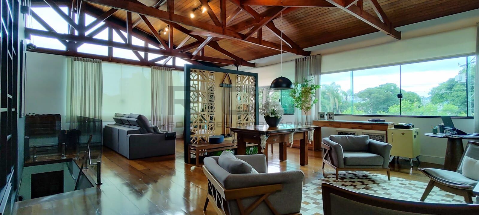 No andar superior, conta com 3 dormitórios, sendo 2 suítes, garantindo conforto e privacidade à família. A sala de estar possui aproximadamente 80 m², distribuída em dois ambientes, perfeita para receber convidados com conforto. Ainda neste pavimento, a área gourmet com cerca de 35 m² dispõe de churrasqueira, chuveirão e banheiro, ideal para momentos de lazer e confraternização.