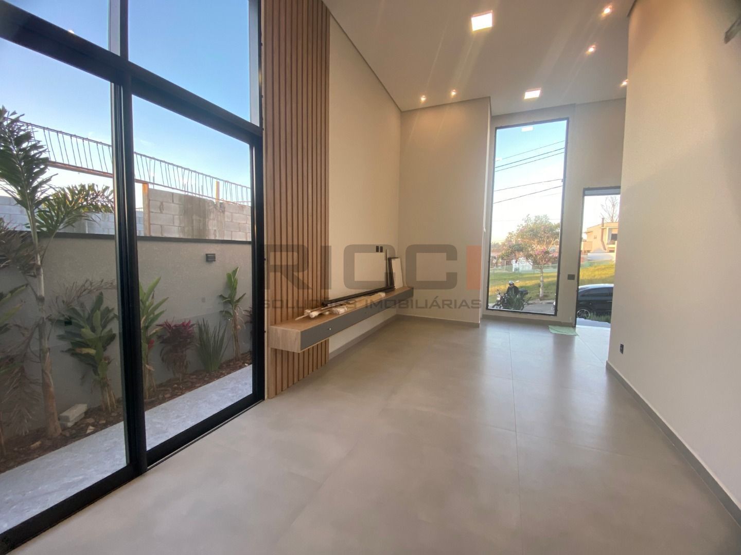 São 3 suítes amplas, todas com ar-condicionado e cortinas blackout automatizadas, garantindo privacidade e conforto térmico em qualquer estação. A sala de estar possui pé direito alto, que amplia o ambiente e traz elegância ao espaço. Integrada à sala de jantar, está a cozinha planejada, equipada com armários sob medida e uma bela ilha em granito, perfeita para o dia a dia e momentos gourmet.